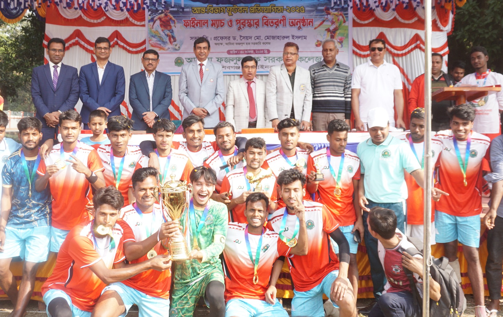 আজ ৩০ নভেম্বর রবিবার আদিনা ফজলুল হক সরকারি কলেজের আন্তঃবিভাগ ফুটবল টুর্নামেন্টের ফাইনাল খেলা অনুষ্ঠিত হয়। আন্ত:বিভাগ ফুটবল টুর্নামেন্ট-২০২৫ ফাইনালে ইতিহাস বিভাগ ১-০ গোলে দর্শন বিভাগকে পরাজিত করে চ্যাম্পিয়ন হওয়ার গৌরব অর্জন করে। প্রতিবছরের মতো এবারও আদিনা ফজলুল হক সরকারি কলেজে আন্তঃবিভাগ ফুটবল টুর্নামেন্ট অনুষ্ঠিত হয়। এতে মোট ১০টি দল অংশগ্রহণ করে।
