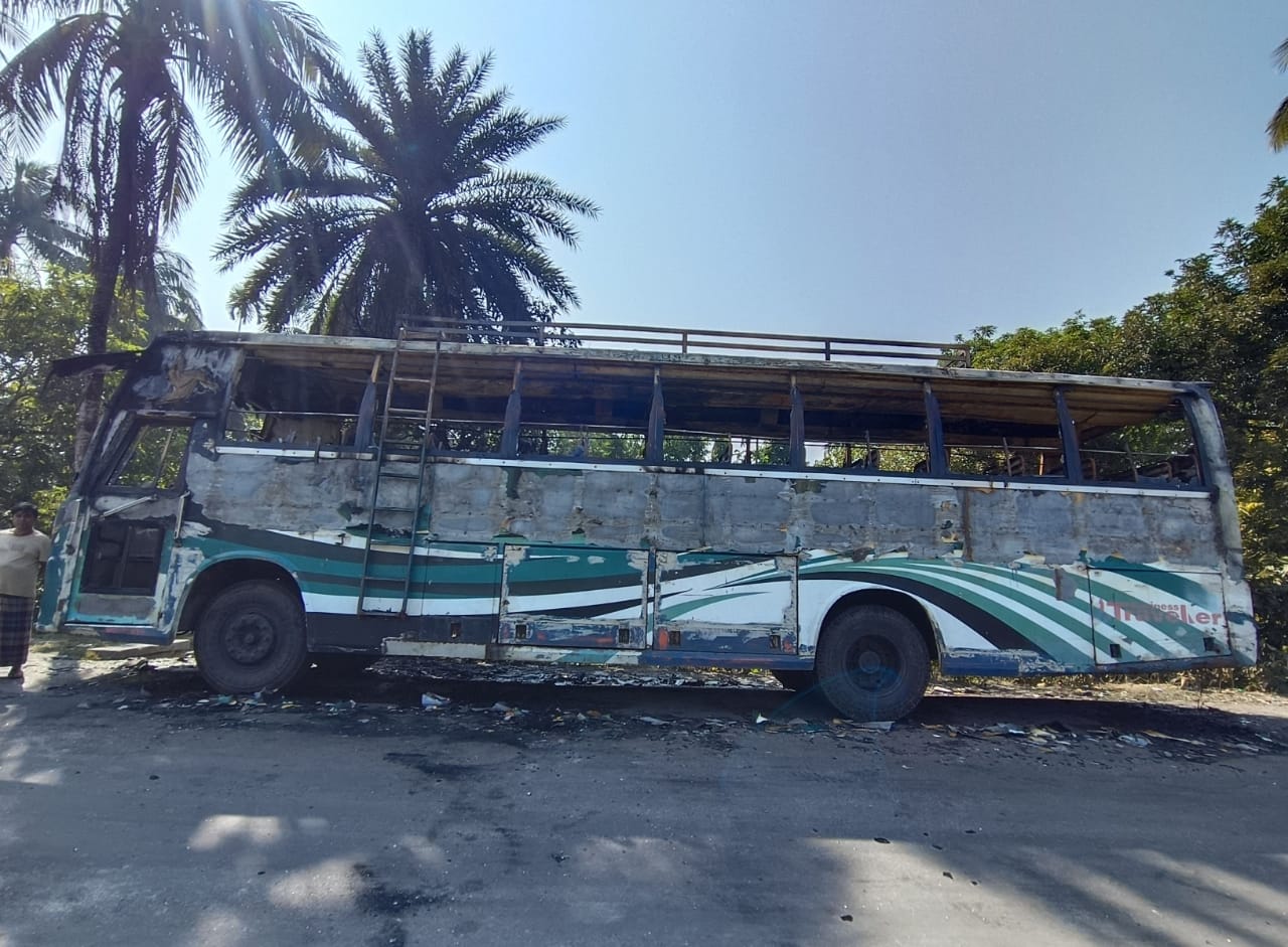 আমতলীতে গভীর রাতে বাসে আগুন, পুড়ে ছাই
