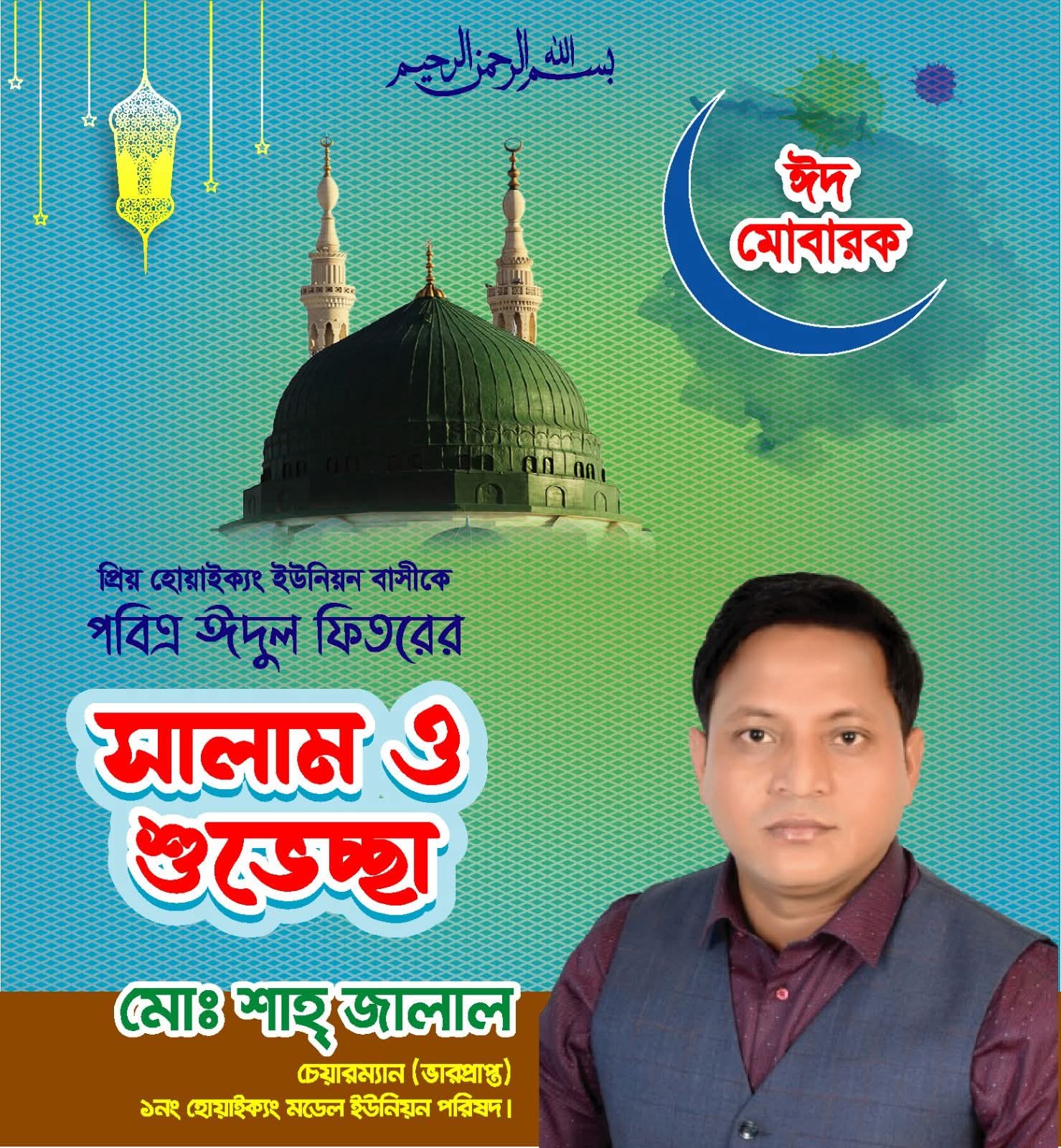 পরিশেষে, আবারও দেশ ও বিদেশে অবস্থানরত আমার প্রিয় হোয়াইক্যং ইউনিয়নবাসীকে জানাই পবিত্র ঈদুল ফিতরের আন্তরিক শুভেচ্ছা ও অভিনন্দন।