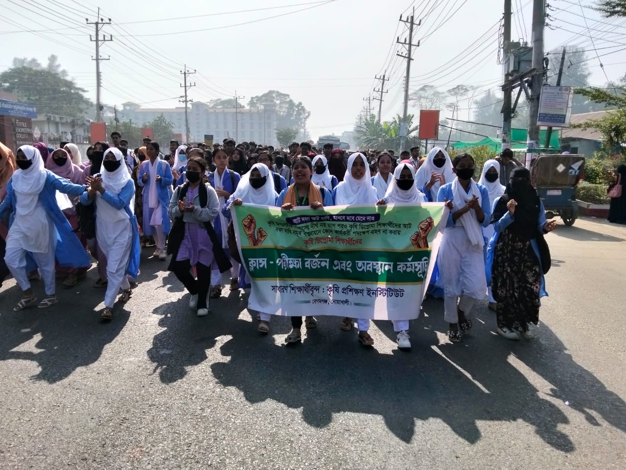 এসময় আন্দোলনকারী শিক্ষার্থীরা বলেন, গত ৯ মাস আগে শিক্ষার্থীরা কৃষি উপদেষ্টা লেপটেন্যান্ট জেনারেল (অব.) মোঃ জাহাঙ্গীর চৌধুরীর সাথে আমাদের প্রতিনিধিদল সাক্ষাৎ করেন, এসময় কৃষি মন্ত্রনালয়ের সচীব ড. মোঃ এমদাদ উল্লা মিলন সহ আরে উচ্চ পদযস্ত নেতৃবন্দু উপস্থিতে দাবী গুলো মেনে নেওয়ার আশ্বাস দিয়ে শিক্ষার্থীদের শ্রেনী কক্ষে ফিরে যাওয়ার নির্দেশ দেওয়ার পর দীর্ঘ ৯ মাস অতিবাহিত হওয়ার পর ও তাদের দাবী গুলো মেনে নেওয়া হয়নি।