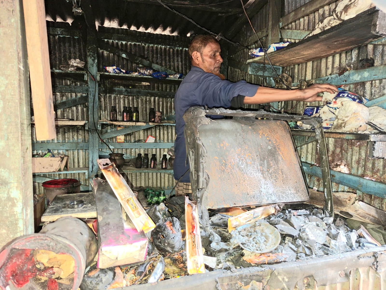দীর্ঘ প্রচেষ্টায় আগুন নিয়ন্ত্রণে এলেও ততক্ষণে টেলিভিশনসহ দোকানের যাবতীয় মালামাল পুড়ে ছাই হয়ে যায়। এক থেকে দেড় লাখ টাকার ক্ষতি সাধিত হয়েছে। কারও সঙ্গে তার ব্যক্তিগত কোনো শত্রুতা নেই। তবে একটি বিশেষ রাজনৈতিক প্রেক্ষাপটের ইঙ্গিত দিয়ে তিনি বলেন "আমার দোকানে স্থানীয় জামায়াত সমর্থকরা নিয়মিত চা খান ও আড্ডা দেন। ধারণা করছি রাজনৈতিক বিরোধের জেরে প্রতিপক্ষ গোষ্ঠী এই নৃশংস নাশকতা ঘটিয়েছে।