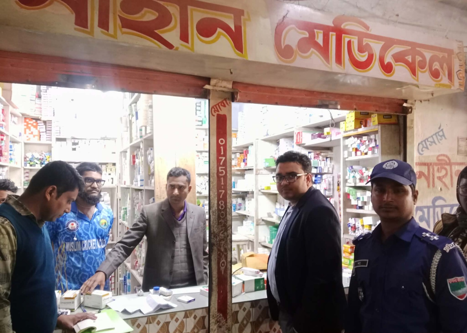 এবং দোকান মালিক ইলিয়াস হোসেনকে ঔষধ ও কসমেটিক আইন ২০২৩ এর ৪০ (গ,ঘ) ধারায় ৫০০০ টাকা জরিমানা করা হয়। ভ্রাম্যমাণ আদালতে অভিযান পরিচালনা করেন কোটচাঁদপুর উপজেলা সহকারী কমিশনার ভুমি ও এক্সিকিউটিভ ম্যাজিস্ট্রেট সোহেল রানা ও ঔষধ প্রশাসন ঝিনাইদহের পরিদর্শক ইকরামুল করিম। উপজেলা ভূমি অফিসের সার্টিফিকেট পেশকার সুব্রত মন্ডল, আইন শৃঙ্খলা রার দায়িত্বে নিয়োজিত মডেল থানা পুলিশের একটি চৌকস দল সহ উপজেলা প্রশাসনের কর্মকর্তা কর্মচারী উপস্থিত ছিলেন।
