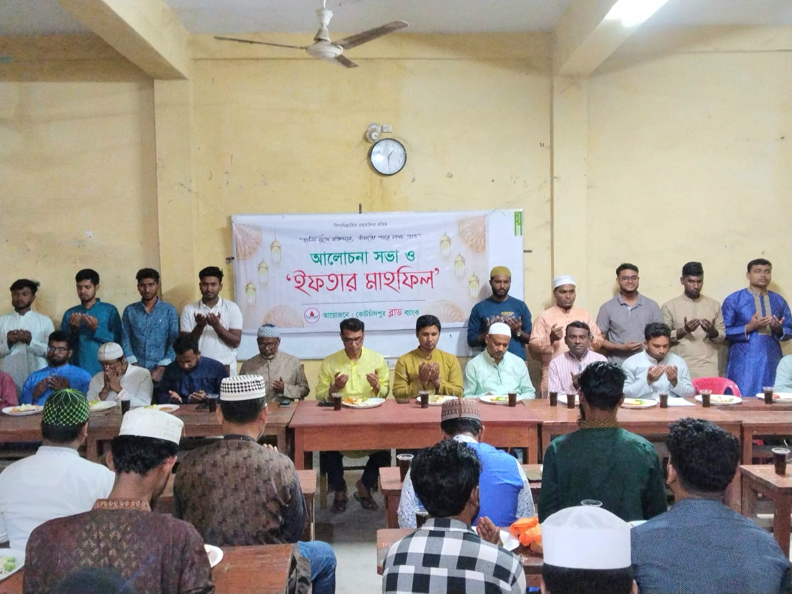 আলোচনা সভা শেষে দেশ, জাতি ও মানবকল্যাণ কামনায় বিশেষ দোয়া করা হয়। পরে উপস্থিত সকলের অংশগ্রহণে ইফতার মাহফিল শান্তিপূর্ণ ও সৌহার্দ্যপূর্ণ পরিবেশে সম্পন্ন হয়।