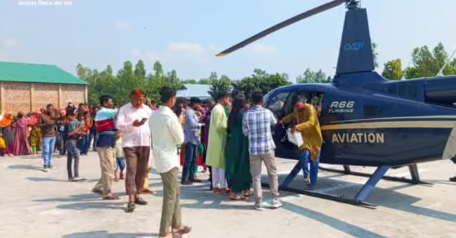 হঠাৎ করেই (23/03/2026) সোমবার দুপুরে গাইবান্ধার সাদুল্লাপুরে গ্রামীন ব্যাংক সংলগ্ন সাবুর চাতালে একটি হেলিকপ্টার অবতরণ করে। জানা যায় হামিন্দপুর গ্রামের ব্যবসায়ী নুরে আলম রেজার মেয়ে আবদিয়া আক্তার রুবাইয়াকে বিয়ে করতে সিলেট জেলার বিশ্বনাথ থানাধীন পাকিচিরি গ্রামের ইসমাইল আলী চমকের কাতার প্রবাসী পুত্র ইউসুফ আলী সোহেল শখ পুরনে হেলিকপ্টারে উড়ে আসেন। আমাদের সাদুল্লাপুর উপজেলায়
