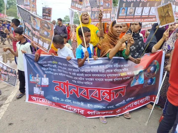 এ সময় বিক্ষোভকারীরা জানান ২৮ মার্চের ২০২৬ তারিখে উপজেলার ঢোলভাঙ্গা এলাকায় ভাড়া বাসায় খুনের শিকার হয়েছিলেন গৃহবধু ববিতা পরে পরিবারের পক্ষ থেকে মামলা দায়ের হলে পুলিশ ববিতার স্বামী হারুনকে গ্রেফতার করলেও অন্য আসামীদের গ্রেফতার করছেন না