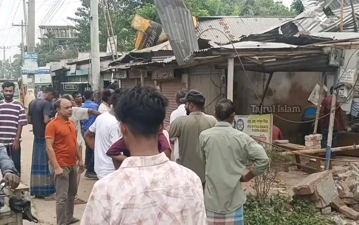 গিয়ে দেখি বিস্ফোরণে হাওয়া মেশিনটি ছিটকে পাশের একটি ঘরের চালের ওপর গিয়ে পড়েছে এবং আশপাশের দোকানগুলোও ক্ষতিগ্রস্ত হয়েছে।
