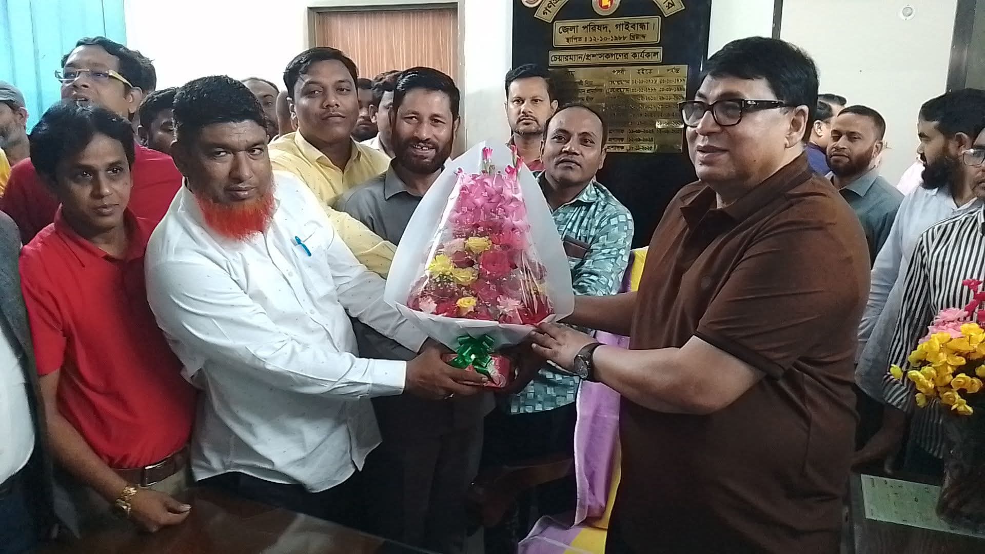 গাইবান্ধা জেলা পরিষদের প্রশাসক অধ্যাপক ডা. মইনুল হাসান সাদিককে ফুলেল শুভেচ্ছা