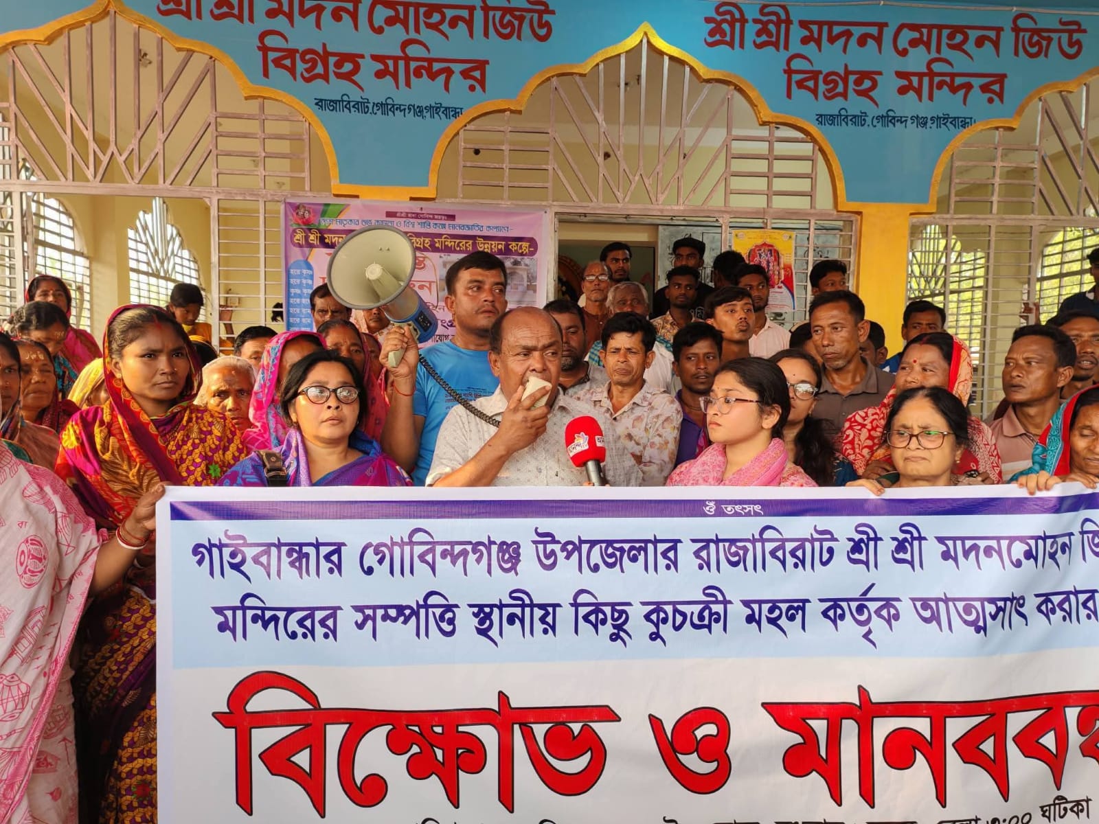 গোবিন্দগঞ্জ উপজেলায় রাজাবিরাট মন্দিরের সম্পত্তি আত্মসাৎ ও চাঁদাবাজির প্রতিবাদে বিশাল মানববন্ধন