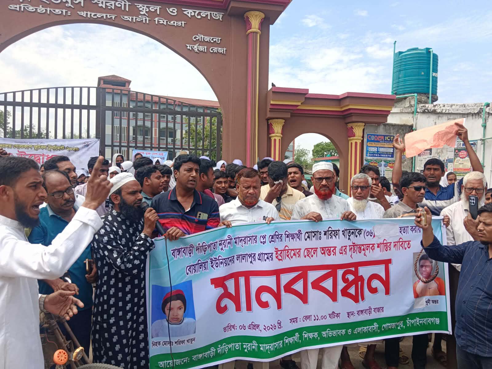 গোমস্তাপুরে শিশু শরিফা হত্যার প্রতিবাদে খুনি দুলা ভাইয়ের ফাঁসির দাবিতে মানববন্ধন
