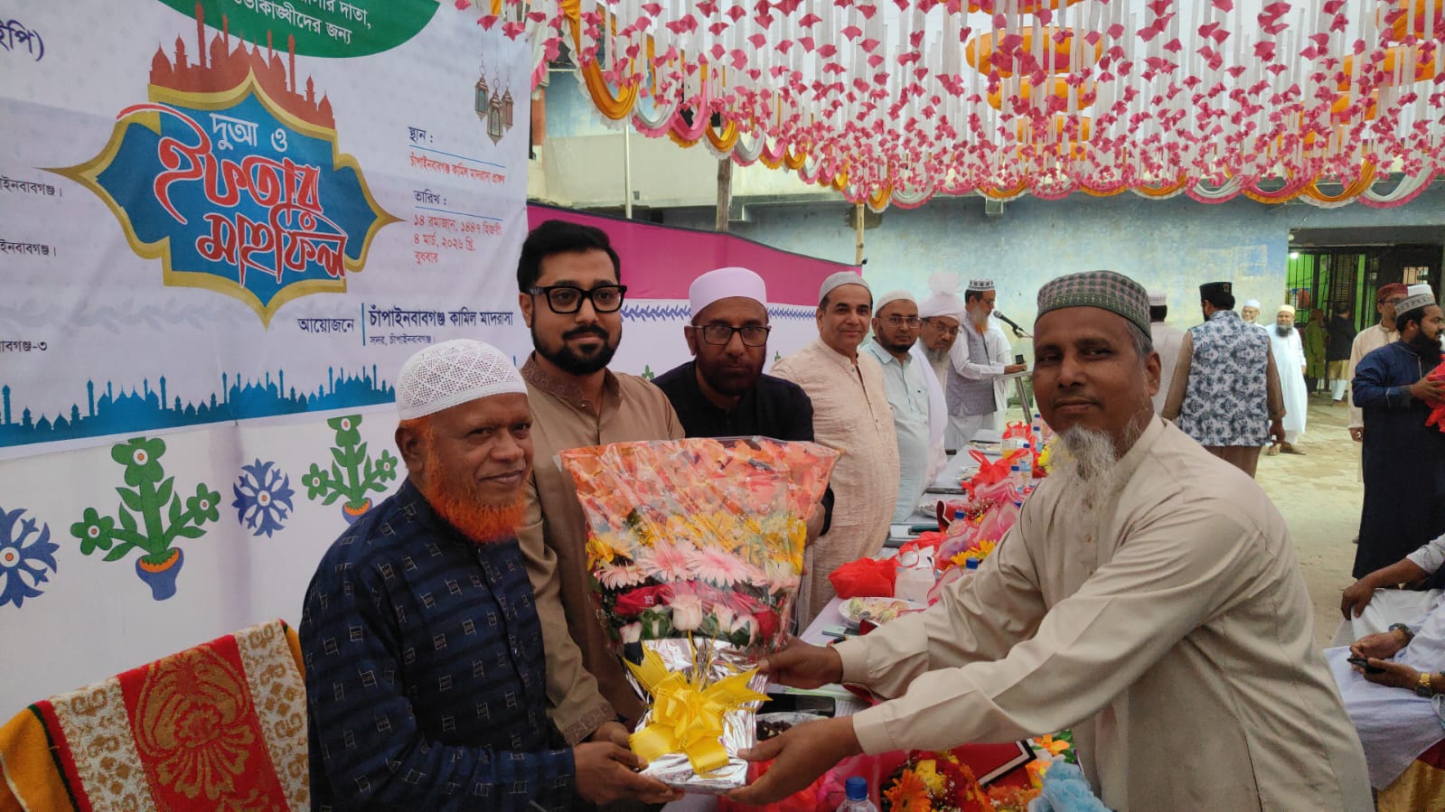 ইফতার মাহফিলে মাদ্রাসার দাতা, প্রতিষ্ঠাতা ও সহযোগিতার সাথে সম্পৃক্ত সকল শুভাকাঙ্ক্ষীদের জন্য বিশেষ দুআ করা হয়। অনুষ্ঠানে স্বাগত বক্তব্য প্রদান করেন মাদ্রাসার অধ্যক্ষ ড. মোহাঃ এমরান হোসেন। উক্ত অনুষ্ঠানে সভাপতিত্ব করেন চাঁপাইনবাবগঞ্জ-৩ আসনের সাবেক সংসদ সদস্য ও অত্র মাদ্রাসার সভাপতি মোহাঃ লতিফুর রহমান। প্রধান অতিথি হিসেবে বক্তব্য দেন চাঁপাইনবাবগঞ্জ-৩ আসনের নবনির্বাচিত সংসদ সদস্য ও বাংলাদেশ জামায়াতে ইসলামীর ঢাকা মহানগরী দক্ষিণ-এর আমীর মোঃ নূরুল ইসলাম বুলবুল। তিনি তার বক্তব্যে মাদ্রাসার সার্বিক উন্নয়ন, শিক্ষা কার্যক্রমের মানোন্নয়ন এবং চলমান নির্মাণ কাজ দ্রুত সম্পন্ন করতে সকলের সহযোগিতা কামনা করেন।