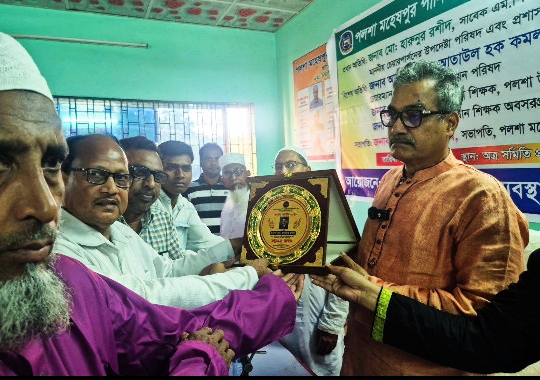জেলা পরিষদের প্রশাসক হারুনুর রশীদকে সংবর্ধনা দিল পলশা পানি ব্যবস্থাপনা সমবায় সমিতি