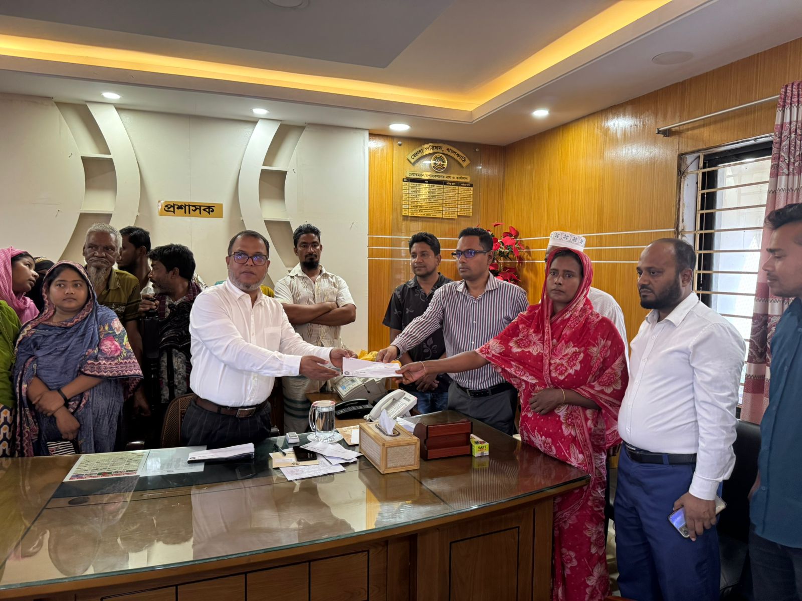 রোববার বিকেল ৩টায় ঝালকাঠি জেলা পরিষদ প্রশাসকের কার্যালয়ে ক্ষতিগ্রস্ত পরিবারগুলোর মাঝে আর্থিক সহায়তার চেক বিতরণ করেন জেলা পরিষদের প্রশাসক। তিনি ক্ষতিগ্রস্ত পরিবার প্রধানদের হাতে অনুদানের চেক তুলে দেন এবং তাদের দুর্দশার কথা মনোযোগ দিয়ে শোনেন।