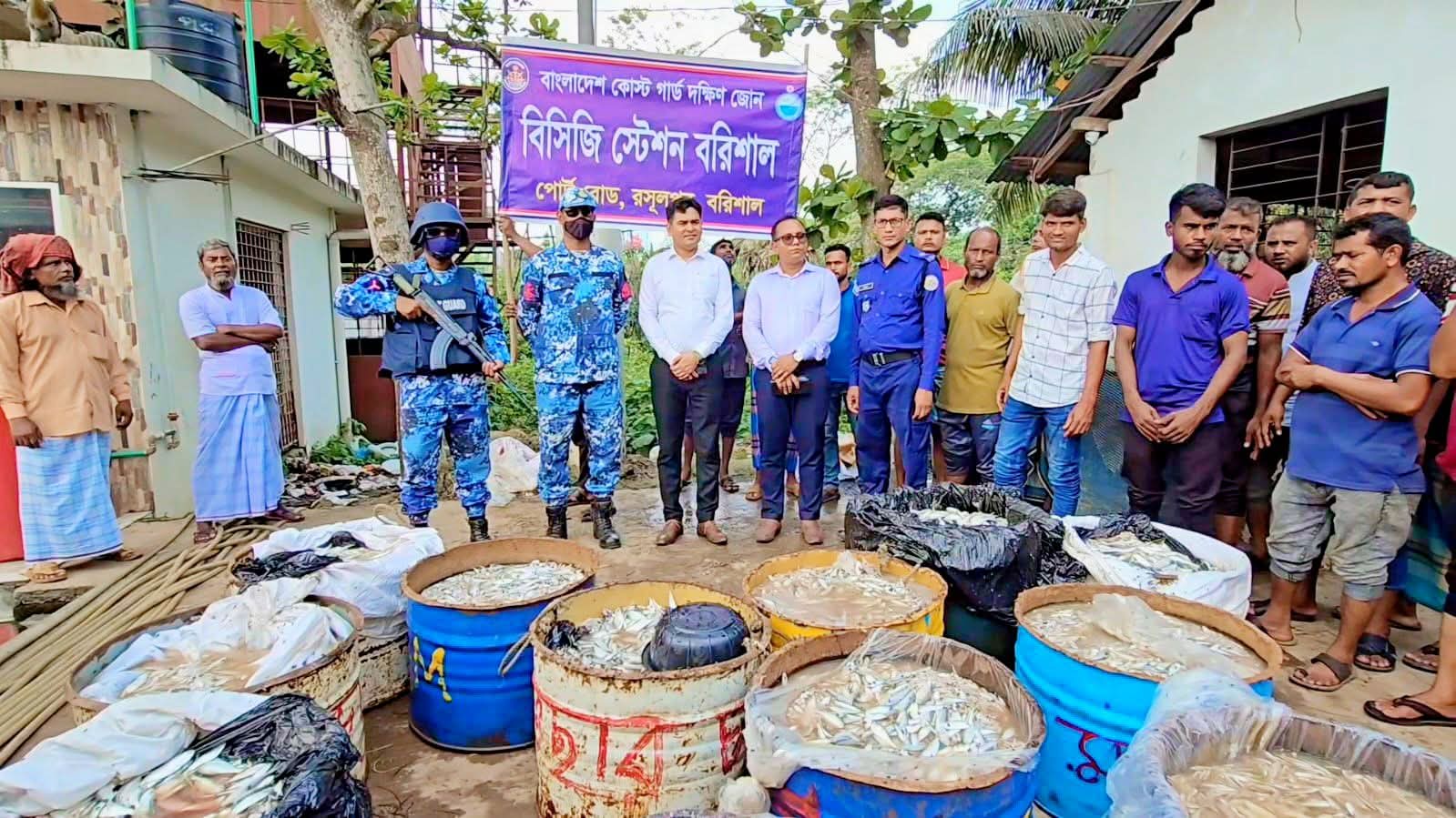 ঝালকাঠী’র নলছিটিতে কোস্ট গার্ডের অভিযানে ৪২ মন জাটকা জব্দ, জরিমানা