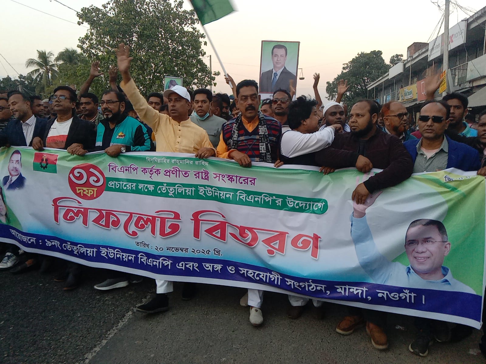 নওগাঁর মান্দায় কেন্দ্রীয় বিএনপি নেতা এম এ মতীনের বিশাল মোটরসাইকেল শোডাউন-লিফলেট বিতরণ ও বর্ণিল পথসভা