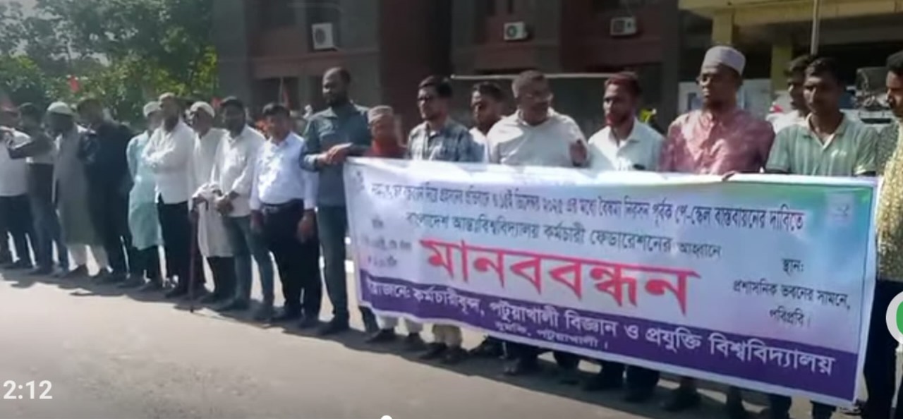 নবম পে-স্কেলের দাবিতে পবিপ্রবিতে কর্মচারী ফেডারেশনের মানববন্ধন