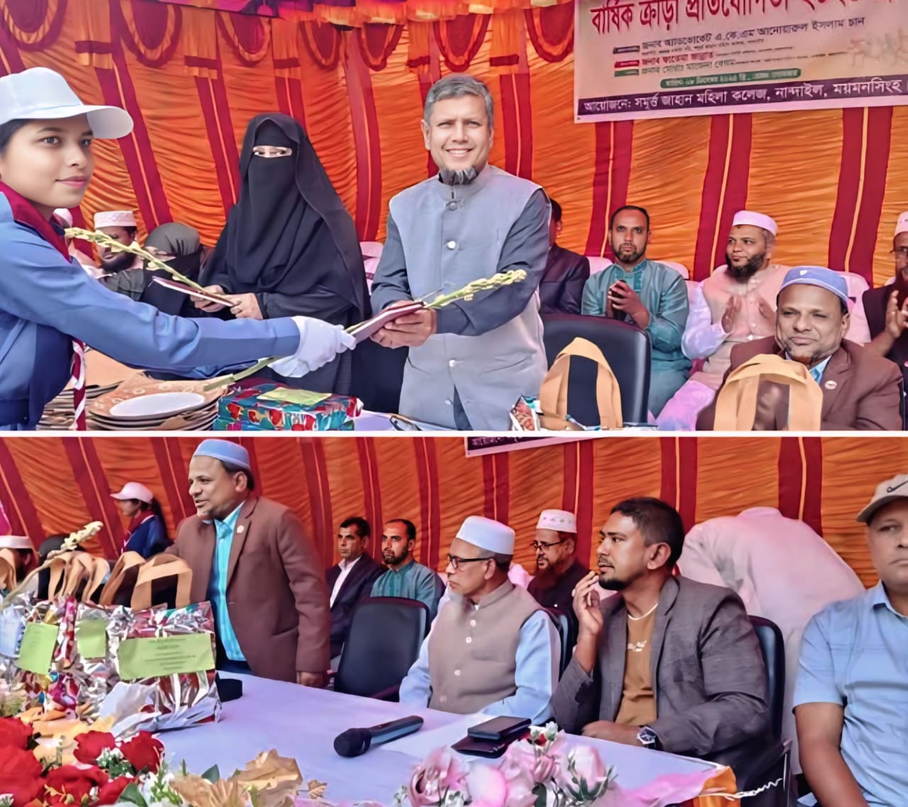 ময়মনসিংহের নান্দাইল উপজেলায় উৎসবমুখর পরিবেশে অনুষ্ঠিত হয়েছে সমূর্ত্ত জাহান মহিলা কলেজের বার্ষিক ক্রীড়া প্রতিযোগিতা ২০২৫ । আজ (৮ ডিসেম্বর) রোজ সোমবার সকালে কলেজ মাঠে দিনের প্রথম আলো ফুটতেই ছাত্রীদের প্রাণচাঞ্চল্যে জমে ওঠে পুরো প্রাঙ্গণ।