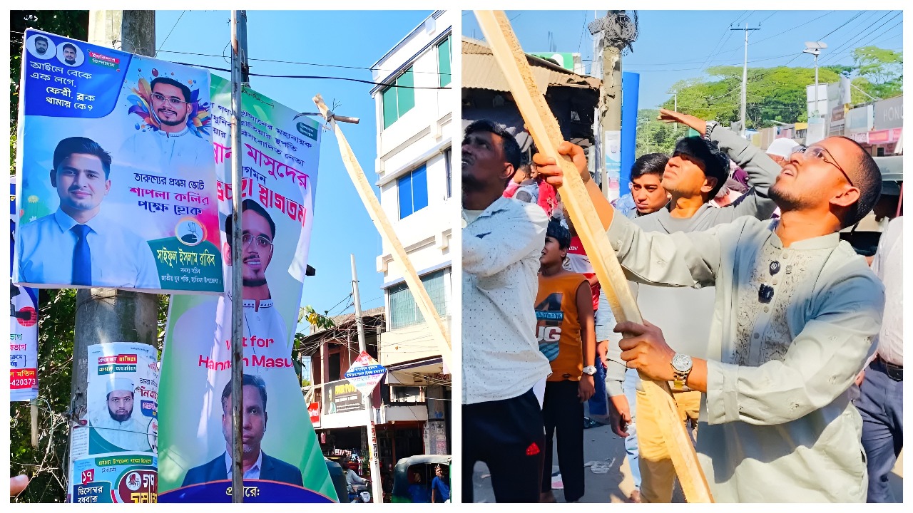 নিজ দায়িত্বে ব্যানার ফেস্টুন অপসারণ করলেন হান্নান মাসউদ