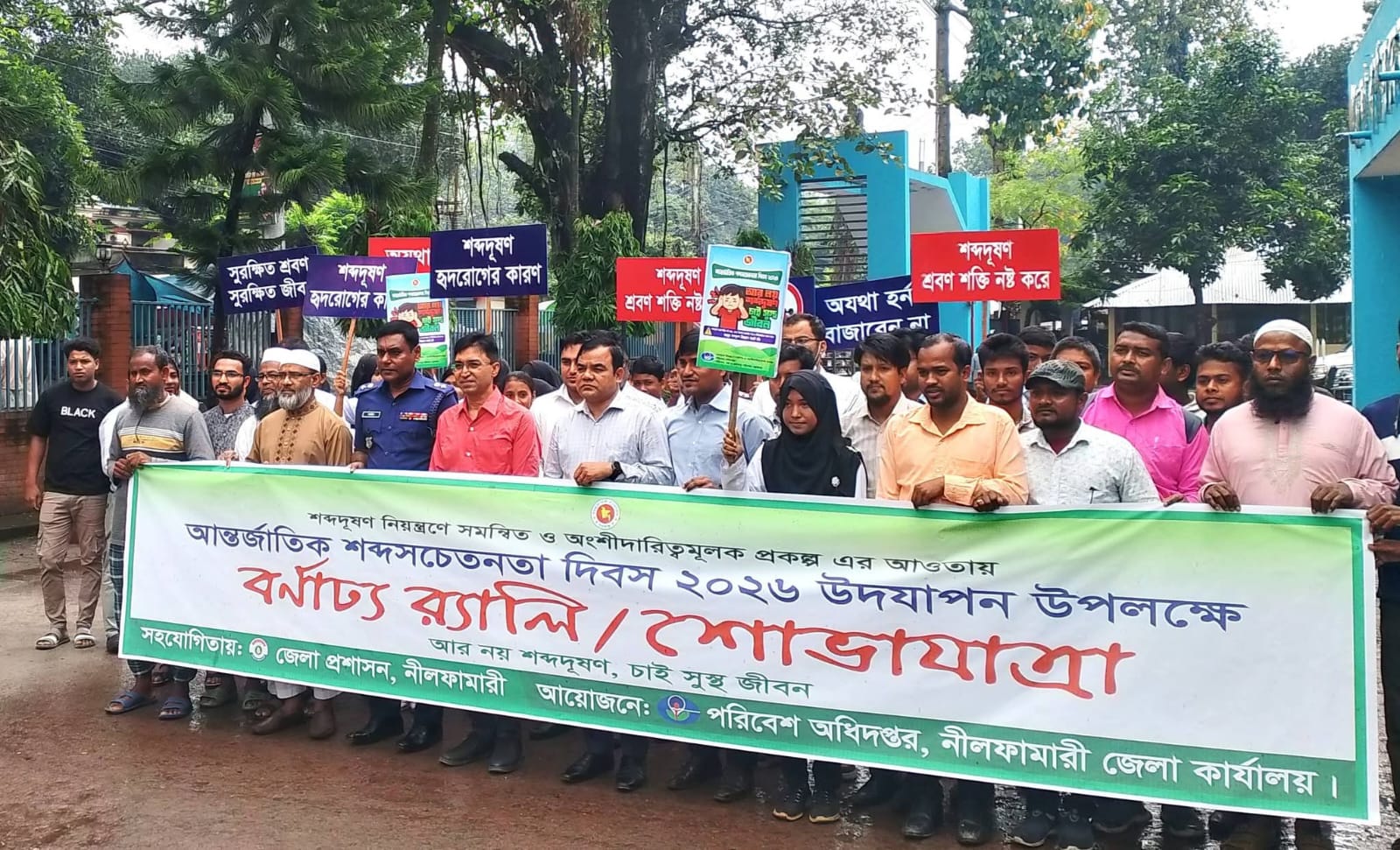 পরিবেশ অধিদপ্তর, নীলফামারী জেলা কার্যালয়ের উদ্যোগে ও জেলা প্রশাসনের সহযোগিতায় আন্তর্জাতিক শব্দসচেতনতা দিবস-২০২৬ উদযাপন করা হয়েছে। বুধবার (২৯ এপ্রিল) সকাল ১০:৩০টায় জেলা প্রশাসক কার্যালয় প্রাঙ্গণে বেলুন ও ফেস্টুন উড়িয়ে কর্মসূচির উদ্বোধন করেন জেলা প্রশাসক মোহাম্মদ নায়িরুজ্জামান। পরে একটি বর্ণাঢ্য র্যালি শহরের জেলা জজ কোর্ট চত্বর প্রদক্ষিণ করে পুনরায় জেলা প্রশাসক কার্যালয়ে এসে শেষ হয়। এরপর জেলা প্রশাসকের সম্মেলন কক্ষে উন্মুক্ত আলোচনা সভা অনুষ্ঠিত হয়।