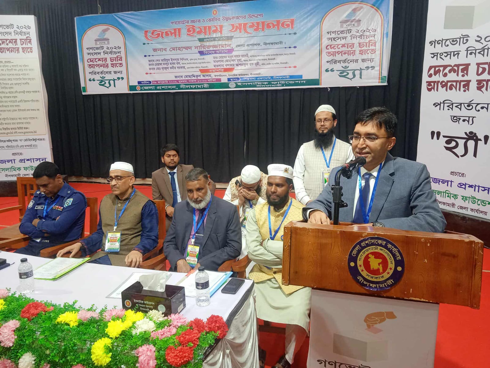 নীলফামারীতে গণভোটের প্রচার ও ভোটারদের উদ্বুদ্ধ করার লক্ষ্যে জেলা ইমাম সম্মেলন অনুষ্ঠিত হয়েছে। জেলা প্রশাসন নীলফামারী ও ইসলামিক ফাউন্ডেশনের যৌথ আয়োজনে বুধবার (২৮ জানুয়ারি) সকাল ১০টায় জেলা শিল্পকলা একাডেমিতে এ সম্মেলন অনুষ্ঠিত হয়।