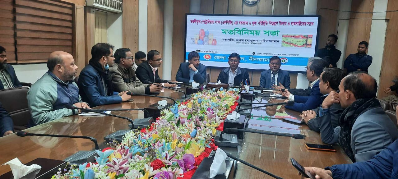 তরলীকৃত পেট্রোলিয়াম গ্যাস (এলপিজি) এর সরবরাহ ও মূল্য পরিস্থিতি নিয়ন্ত্রণে নীলফামারীর ডিলার ও ব্যবসায়ীদের সাথে জেলা প্রশাসকের (ডিসি) মতবিনিময় সভা অনুষ্ঠিত হয়েছে। সোমবার সন্ধ্যায় জেলা প্রশাসকের সম্মেলন কক্ষে জেলা প্রশাসকের আয়োজনে মতবিনিময় সভায় সভাপতিত্ব করেন জেলা প্রশাসক মোহাম্মদ নায়িরুজ্জামান।