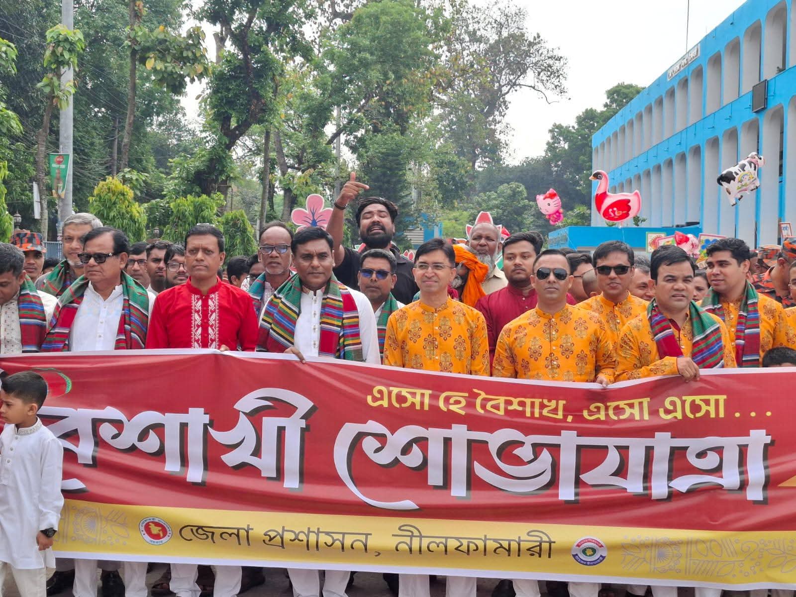 বাঙালির চিরায়ত ঐতিহ্য, সংস্কৃতি ও আনন্দ-উচ্ছ্বাসের প্রতীক পহেলা বৈশাখ বর্ণাঢ্য আয়োজনে নীলফামারীতে উদযাপিত হয়েছে। দিনব্যাপী নানা কর্মসূচির মধ্য দিয়ে নতুন বাংলা বছরকে স্বাগত জানায় জেলার সর্বস্তরের মানুষ।