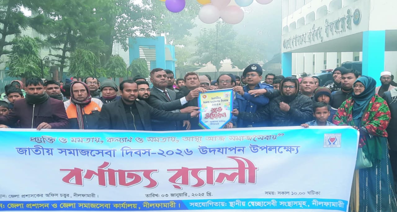 ‘প্রযুক্তি ও মমতায়, কল্যাণ ও সমতায়, আস্থা আজ সমাজসেবায়’ এই প্রতিপাদ্য বিষয়কে নিয়ে নীলফামারীতে জাতীয় সমাজসেবা দিবস উদযাপন উপলক্ষ্যে বর্ণাঢ্য র্যালী ও আলোচনা সভা অনুষ্ঠিত হয়েছে।