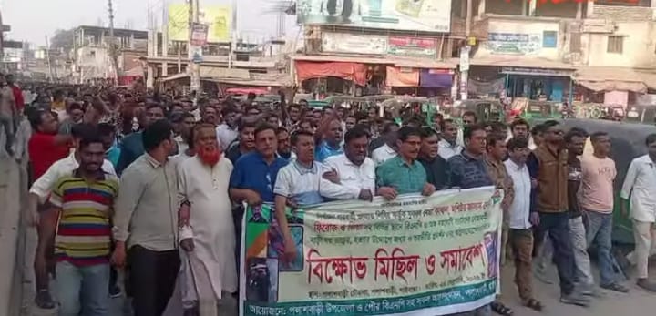 পলাশবাড়ীতে জামায়াত শিবিরের নৈরাজ্যের প্রতিবাদে বিএনপির বিক্ষোভ সমাবেশ