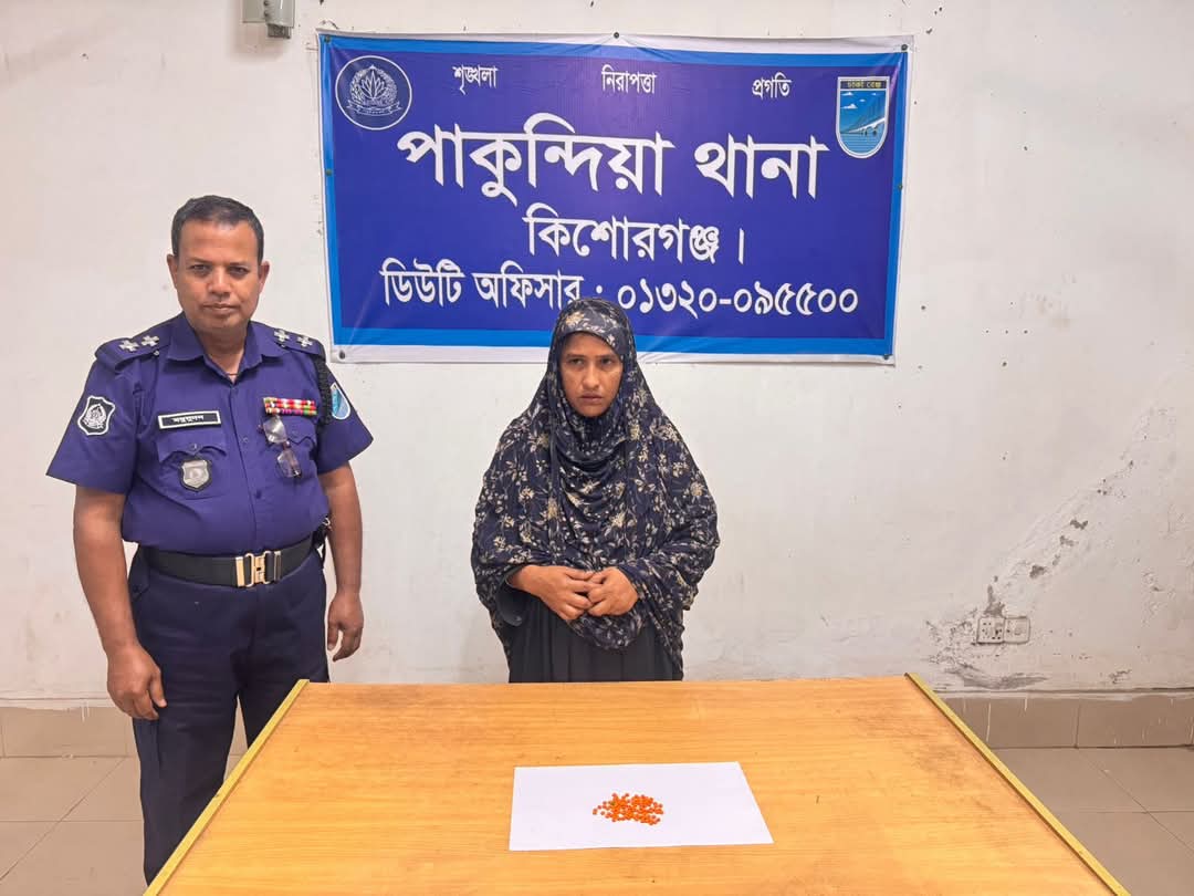 কিশোরগঞ্জের পাকুন্দিয়া উপজেলায় মাদকবিরোধী অভিযানে ১০০ পিস ইয়াবাসহ এক নারীকে গ্রেফতার করেছে পুলিশ। জেলার চলমান বিশেষ অভিযানের অংশ হিসেবে এ অভিযান পরিচালনা করা হয়।