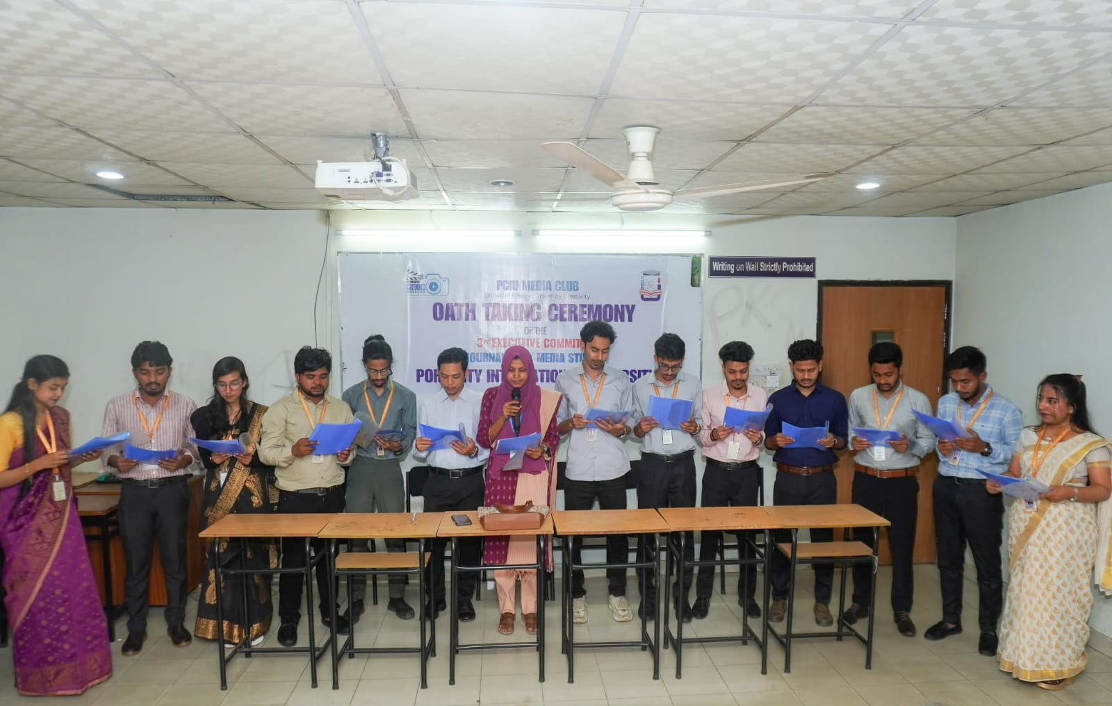 অনুষ্ঠানে পিসিআইইউ মিডিয়া ক্লাবের সভাপতি সৌরভ মজুমদারের সভাপতিত্বে এবং সাধারণ সম্পাদক কাজী মোঃ সাইফুল হাসানের সঞ্চালনায় নবনির্বাচিত কমিটির সদস্যদের শপথ গ্রহণ অনুষ্ঠিত হয়। অনুষ্ঠানে প্রধান অতিথি হিসেবে উপস্থিত ছিলেন বিশ্ববিদ্যালয়ের কলা, সমাজবিজ্ঞান ও আইন অনুষদের ডিন অধ্যাপক মাইনুল হাসান চৌধুরী।