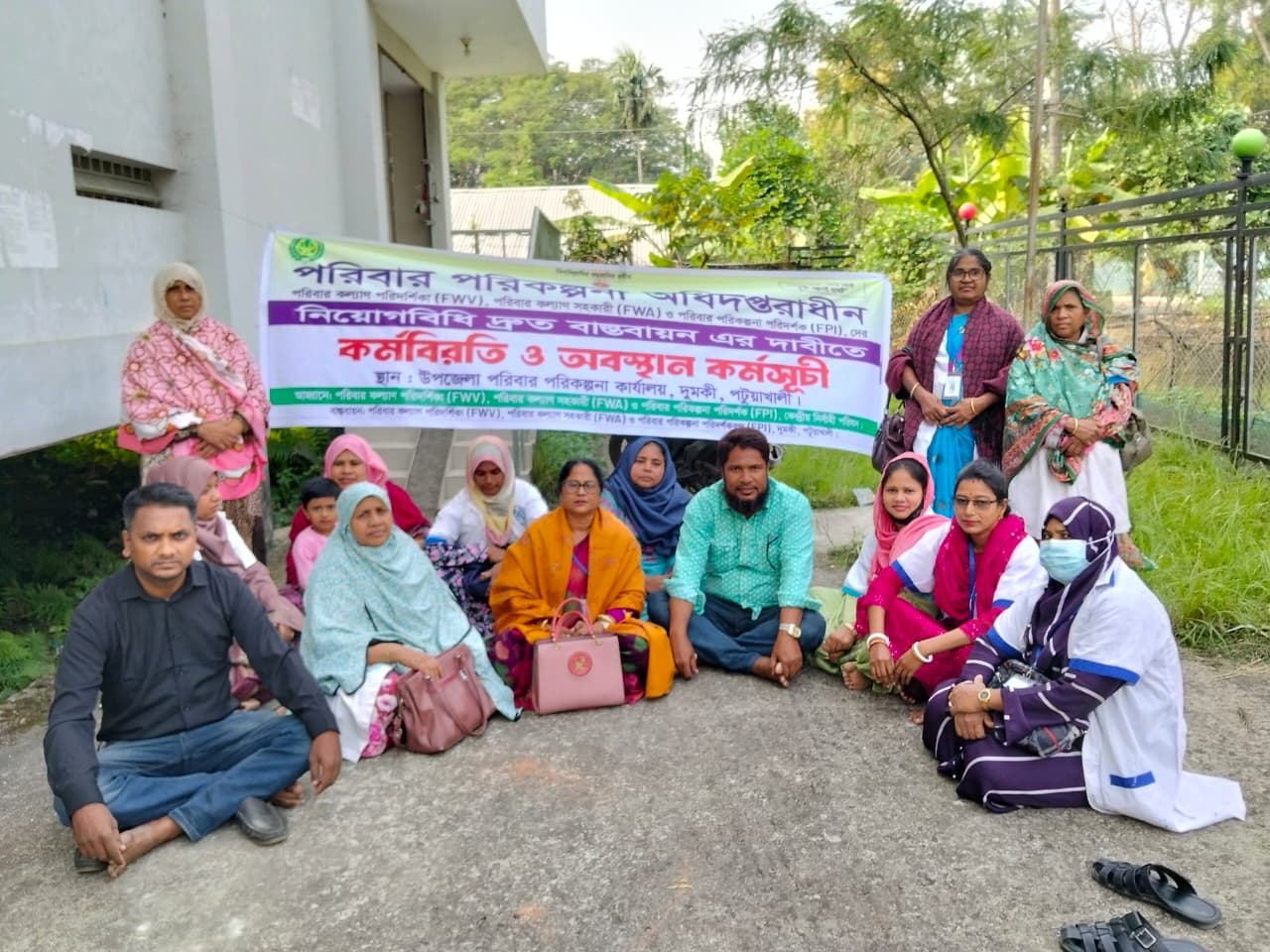 প্রস্তাবিত বিধিনিয়োগ বাস্তবায়নের দাবীতে পরিবার পরিকল্পনা কর্মীদের কর্মবিরতি ও অবস্থান ধর্মঘট