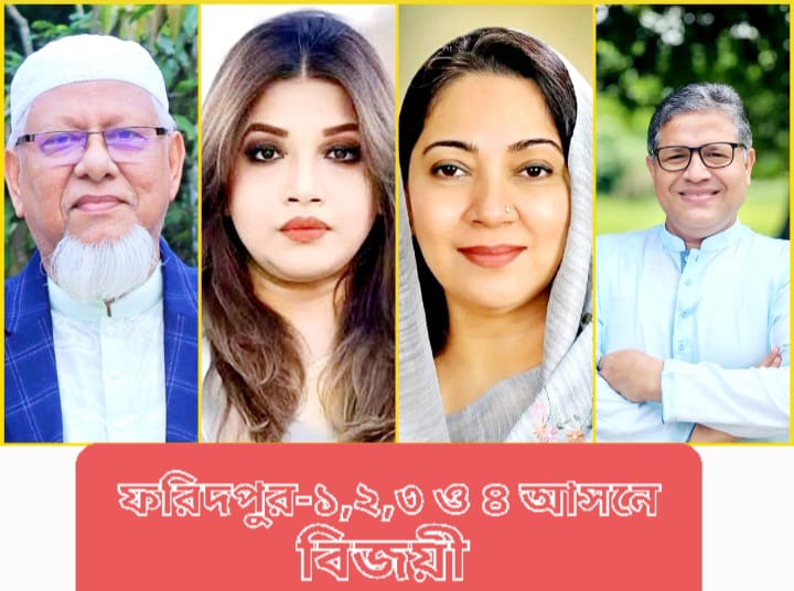 এদের মধ্যে ফরিদপুর-১ (মধুখালী- বোয়ালমারী ও আলফাডাঙ্গা) আসনে জামায়াতের প্রার্থী ড. মোঃ ইলিয়াস মোল্লা, ফরিদপুর-২ (সালথা ও নগরকান্দা) আসনে বিএনপি প্রার্থী শামা ওবায়েদ ইসলাম, ফরিদপুর-৩ আসনে বিএনপির প্রার্থী চৌধুরী নায়াব ইউসুফ ও ফরিদপুর-৪ (ভাঙ্গা, সদরপুর ও চর ভদ্রাসন) আসনে বিএনপির প্রার্থী শহিদুল ইসলাম বাবুল বিজয়ী হয়েছেন।