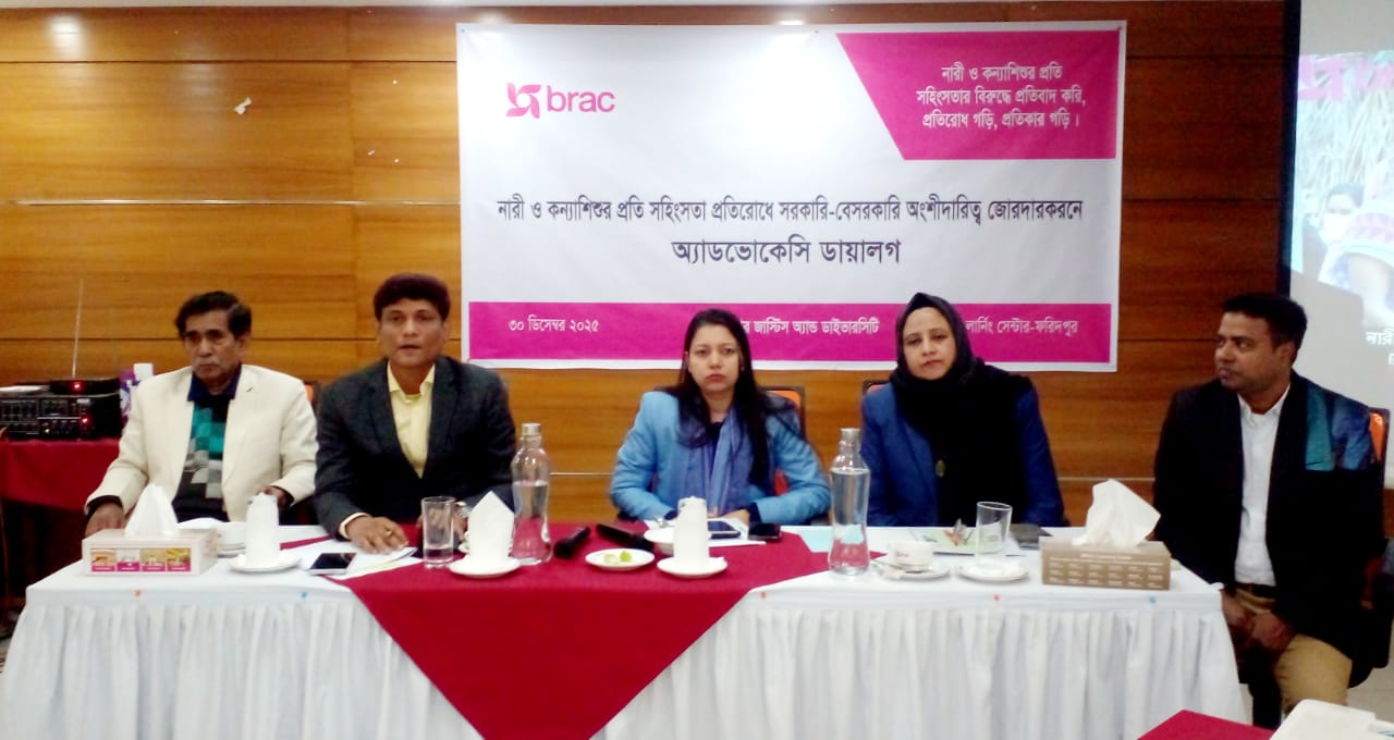 ফরিদপুরে ব্র্যাকের উদ্যোগে নারী ও কন্যাশিশুর প্রতি সহিংসতা প্রতিরোধে সরকারি-বেসরকারি অংশীদারিত্ব জোরদারকরনে বিষয় নিয়ে অ্যাডভোকেসি ডায়ালগ অনুষ্ঠিত হয়েছে।