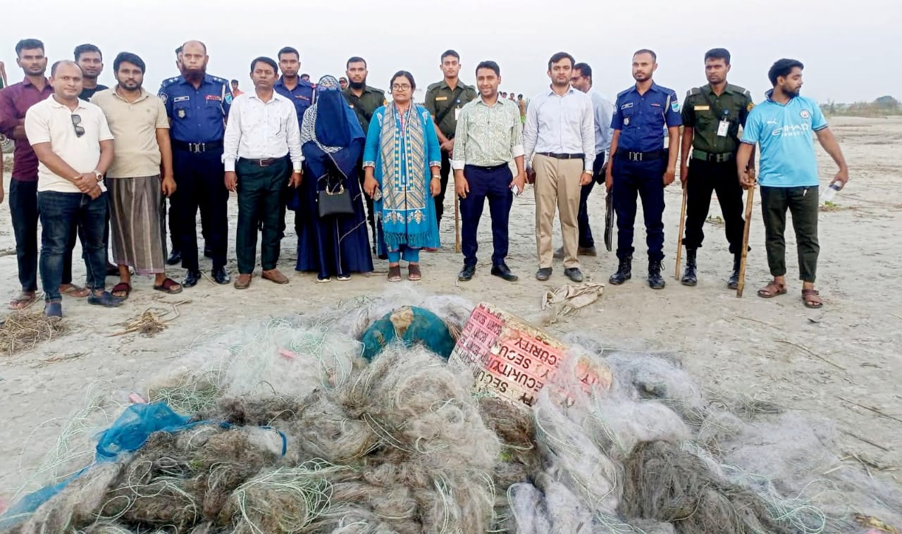 ফরিদপুরে মা ইলিশ রক্ষায় ৩০ হাজার মিটার কারেন্ট জাল পুড়িয়ে দিয়েছে ভ্রাম্যমাণ আদালত