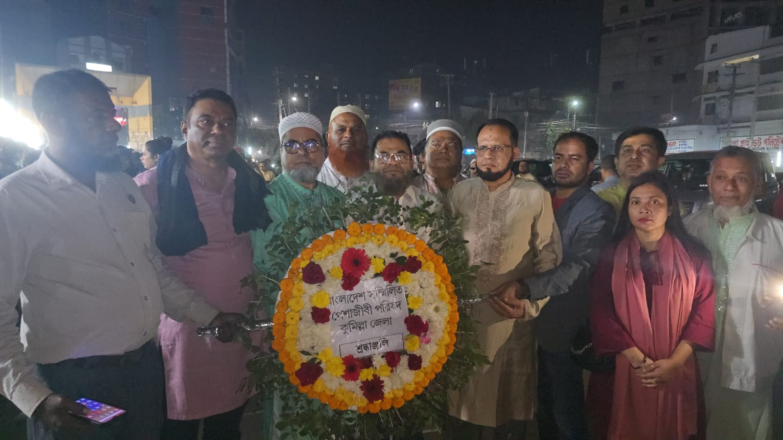 বাংলাদেশ সম্মেলিত পেশাজীবি পরিষদের কুমিল্লা জেলার আহ্বায়ক ডা. নজরুল ইসলাম শাহীনের নেতৃত্বে উপস্থিত ছিলেন, সদস্য সচিব এড. রেজাউল করীম মিঠু, সিনিয়র যুগ্ন-আহ্বায়ক অধ্যাপক ডা. দেলোয়ার হোসেন, কুমিল্লা জেলা সাংবাদিক ইউনিয়নের সভাপতি মির্জা ফসিউদ্দিন আহম্মেদ (শাহীন মির্জা), ইঞ্জিনিয়ার মোরশেদ, মোঃ আবুল কালাম, ডা. বশির আহম্মদ, দেশপত্র পত্রিকার প্রধান সম্পাদক জুয়েল খন্দকার, জয়যাত্রা সম্পাদক এড. মির্জা সাইদিয়া আইরিন জ্যোতি, মাইনুল হোসেন ভূইয়া, জাকির হোসেন প্রমুখ।