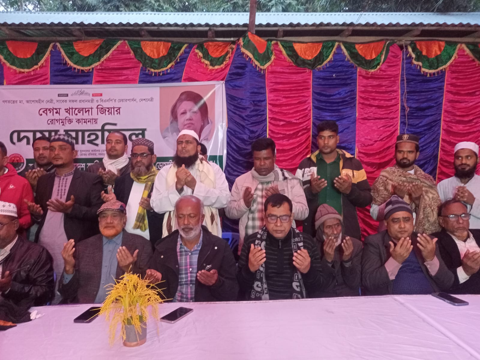 ইউনিয়ন যুবদলের সভাপতি সালেহ আকরাম খান পল্লবের সভাপতিত্বে এবং সাধারণ সম্পাদক সেলিম উদ্দিনের সঞ্চালনায় এই দোয়া মাহফিল অনুষ্ঠিত হয় ।