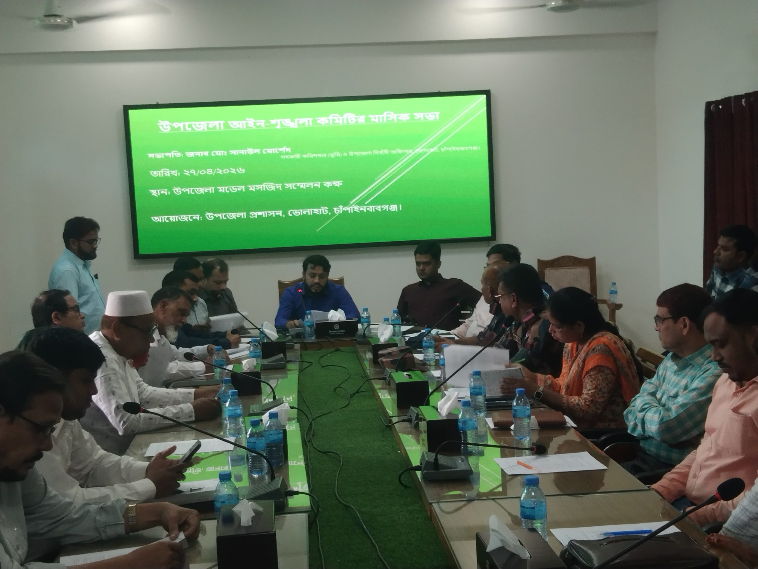 চাঁপাইনবাবগঞ্জের ভোলাহাটে উপজেলা প্রশাসনের আয়োজনে মাসিক আইন-শৃঙ্খলা কমিটি, সমন্বয় কমিটি এবং বিভিন্ন এনজিওদের সভা সকাল ১০টায় (২৭ এপ্রিল ২০২৬) সোমবার উপজেলা মডেল মসজিদ সম্মলন কক্ষ্যে অনুষ্ঠিত হয়।