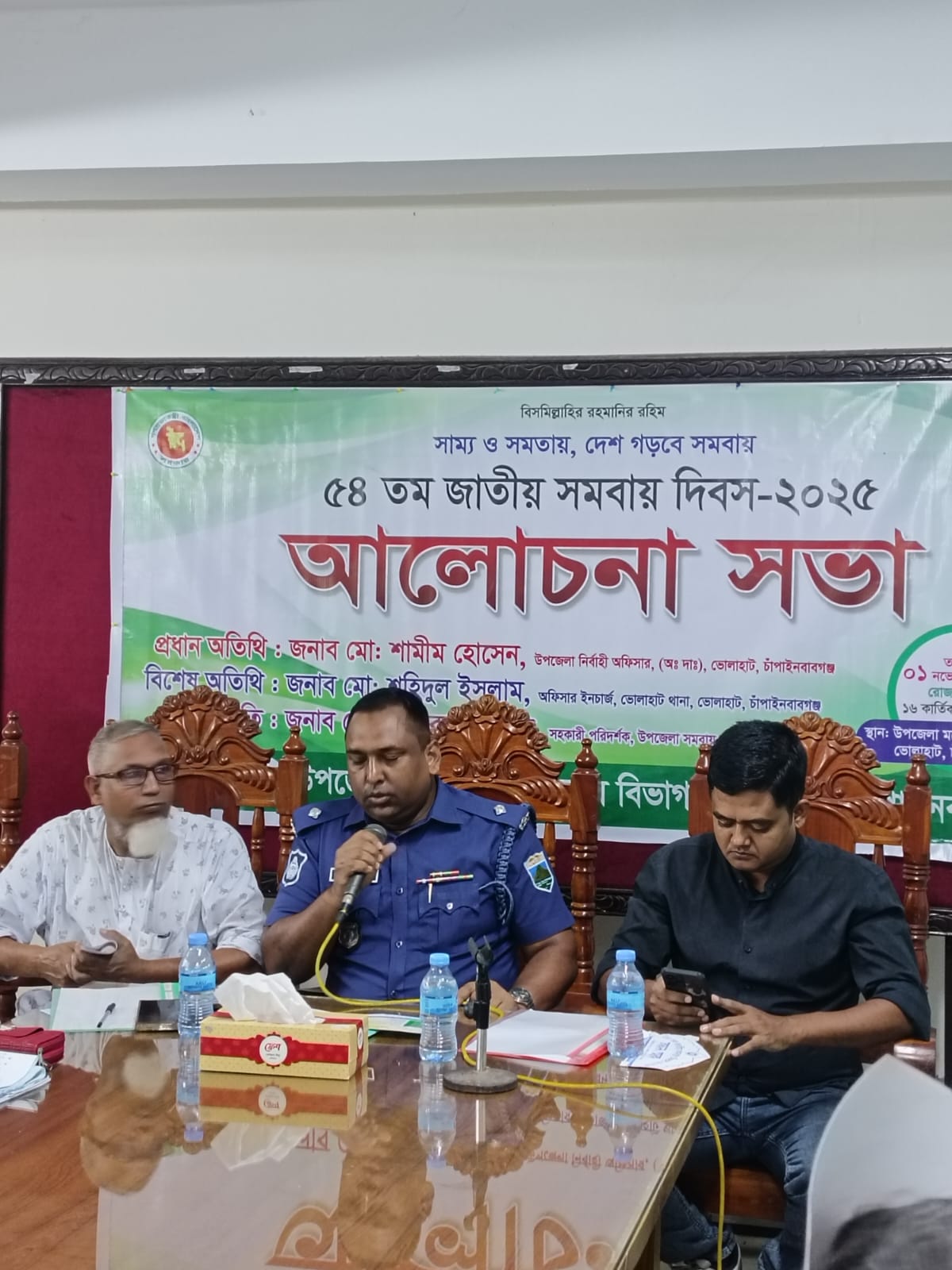 চাঁপাইনবাবগঞ্জের ভোলাহাটে ৫৪তম জাতীয় সমবায় দিবস ২০২৫ যথাযথভাবে শনিবার সকাল সাড়ে ১০টায় (১ নভেম্বর ২০২৫) উপলক্ষ্যে দিনটি পালনে জাতীয় ও সমবায় উত্তোলন, বর্ণাঢ্য র্যালী, আলোচনা সভা অনুষ্ঠিত হয়।