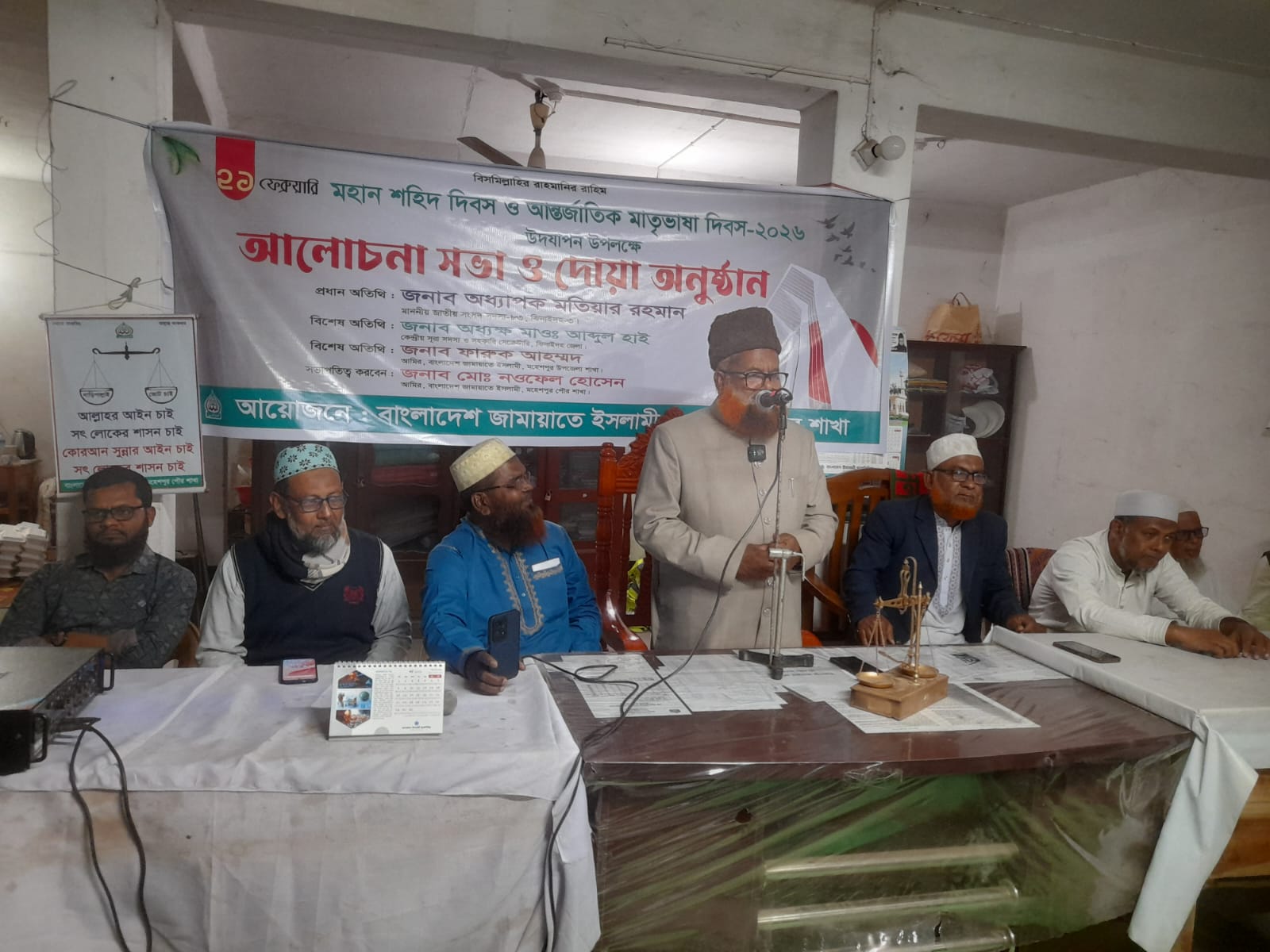 একুশে ফেব্রুয়ারি মহান শহীদ দিবস ও আন্তর্জাতিক মাতৃভাষা দিবস ২০২৬ উদযাপন উপলক্ষে বাংলাদেশ জামায়াতে ইসলামী মহেশপুর পৌর শাখা আলোচনা সভা ও দোয়ার অনুষ্ঠানের আয়োজন করে।
