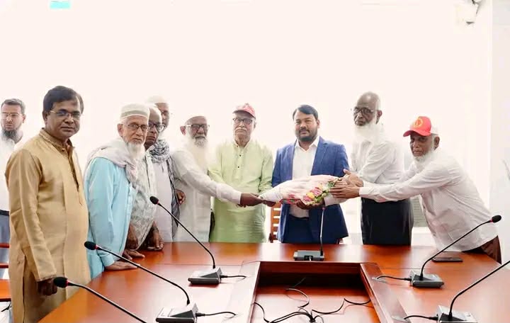 রাজশাহী, ৯ এপ্রিল: রাজশাহী সিটি কর্পোরেশনের নগর ভবনে প্রশাসক জনাব মোঃ মাহফুজুর রহমান রিটন মহোদয়ের সঙ্গে সৌজন্য সাক্ষাৎ করেছেন রাজশাহী পশ্চিমাঞ্চল মুক্তিযোদ্ধা সমবায় সমিতির নেতৃবৃন্দ।