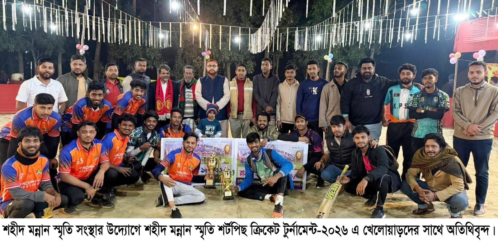 শহীদ মন্নান স্মৃতি সংস্থার উদ্যোগে শহীদ মন্নান স্মৃতি শর্টপিছ ক্রিকেট টুর্নামেন্ট-২০২৬ দ্বিতীয়বারের মতো সফলভাবে অনুষ্ঠিত হয়েছে। শুক্রবার (৩০ জানুয়ারি ২০২৬) শহীদ আব্দুল মন্নানের কবরের পশ্চিম পাশ্ববর্তী খেলার মাঠে আয়োজিত এ টুর্নামেন্টটি ক্রীড়াপ্রেমী দর্শক ও স্থানীয় গণ্যমান্য ব্যক্তিদের স্বতঃস্ফূর্ত অংশগ্রহণে উৎসবমুখর পরিবেশে সম্পন্ন হয়। টুর্নামেন্টে সভাপতিত্ব করেন শহীদ মন্নান স্মৃতি সংস্থার সম্মানিত উপদেষ্টা ও সীটেক্স লিমিটেড (সিইপিজেড)-এর পরিচালক মোহাম্মদ সালাউদ্দীন আহমেদ। উদ্বোধক হিসেবে উপস্থিত ছিলেন সংস্থার সম্মানিত উপদেষ্টা ও এলাকার গর্ব বীর মুক্তিযোদ্ধা মোহাম্মদ আবু তাহের।