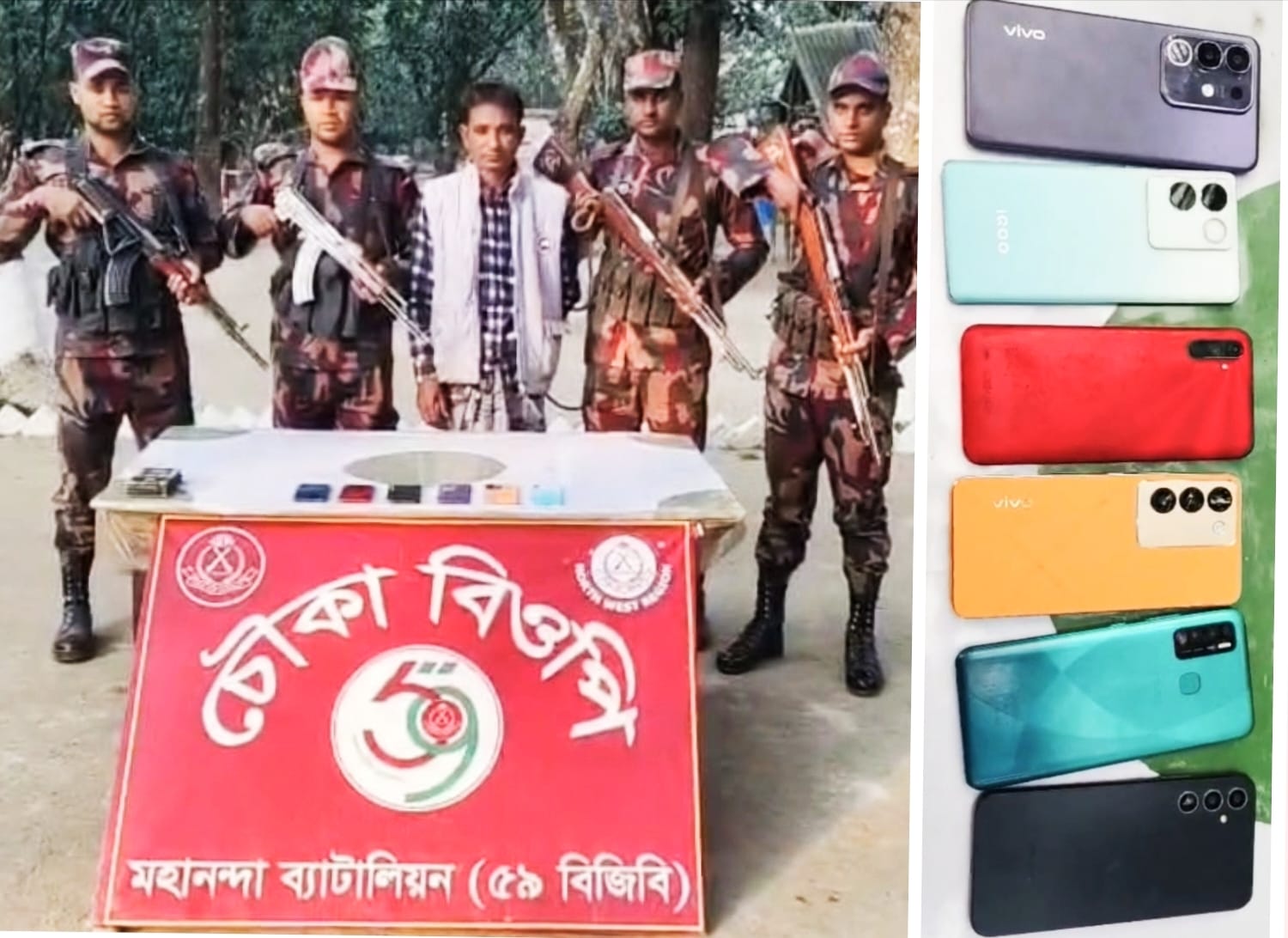 শিবগঞ্জ সীমান্তে ৬টি ভারতীয় চোরাই মোবাইলসহ আটক ১