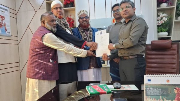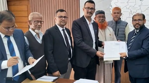 সুনামগঞ্জ প্রতিনিধি কুলেন্দু শেখর দাস আসন্ন ত্রয়োদশ জাতীয় সংসদ নির্বাচনে সুনামগঞ্জ-৪ (সুনামগঞ্জ সদর ও বিশ্বম্ভরপুর ) আসনে খেলাফত মজলিস মনোনীত দেওয়াল ঘড়ি প্রতীকের প্রার্থী মাওলানা আমিরুল ইসলামের পক্ষে মনোনয়নপত্র সংগ্রহ