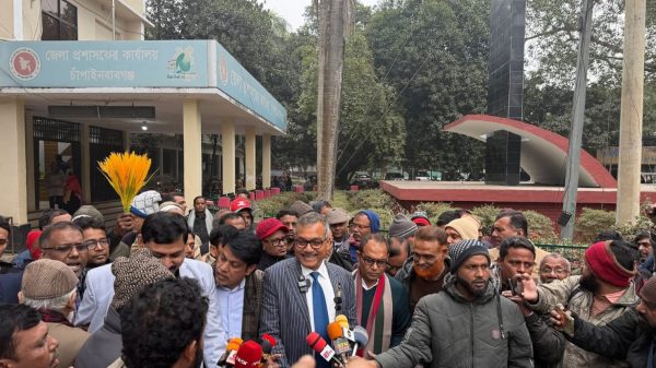 মাহিদুল ইসলাম ফরহাদ চাঁপাইনবাবগঞ্জ জেলা প্রতিনিধি আসন্ন ত্রয়োদশ জাতীয় সংসদ নির্বাচন ২০২৬-কে সামনে রেখে উৎসবমুখর পরিবেশে মনোনয়নপত্র জমা দিয়েছেন চাঁপাইনবাবগঞ্জ-৩ (সদর) আসনের বিএনপির মনোনীত প্রার্থী ও সাবেক সংসদ সদস্য জনাব মোঃ