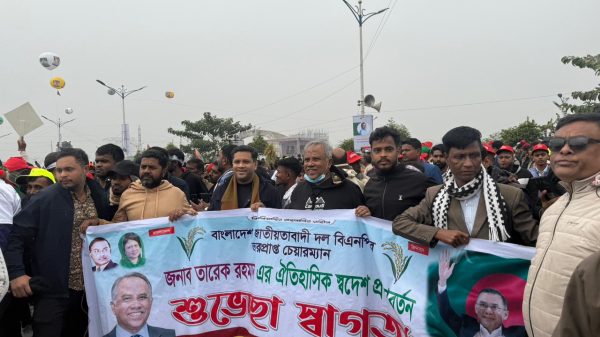 চট্টগ্রাম বিশেষ প্রতিনিধি (আহমদ রেজা) বাংলাদেশ জাতীয়তাবাদী দল (বিএনপি)-এর ভারপ্রাপ্ত চেয়ারম্যান জনাব তারেক রহমানের স্বদেশ প্রত্যাবর্তনকে ঘিরে চট্টগ্রামের আনোয়ারা ও কর্ণফুলী এলাকায় বর্ণাঢ্য শুভেচ্ছা মিছিল অনুষ্ঠিত হয়েছে। শহীদ জিয়া প্রজন্ম