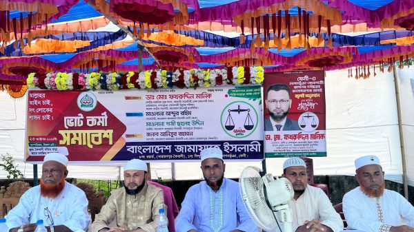 “আমরা ভোটারদের নিরাপত্তায় সার্বক্ষণিক পাহারার ব্যাবস্থা করবো”। ডা: মো: ফখরুদ্দিন মানিক আবুল হাসনাত তুহিন ফেনী:- বাংলাদেশ জামায়াতে ইসলামী দাগনভূঁঞা উপজেলা ১নং সিন্দুরপুর ইউনিয়ন ৮নং ওয়ার্ডের উদ্যোগে ভোট কর্মী সমাবেশে প্রধান