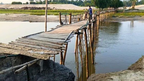 আব্দুস সালাম,নীলফামারীঃ নীলফামারীর জলঢাকা উপজেলার শিমুলবাড়ি ও খুটামারা ইউনিয়নের প্রায় ১৫ হাজার মানুষের যাতায়াতের একমাত্র ভরসা ১৪০ মিটার দীর্ঘ একটি কাঠের সাঁকো। বর্তমানে সাঁকোটি জরাজীর্ণ হয়ে পড়েছে, যেকোনো সময় ভেঙে