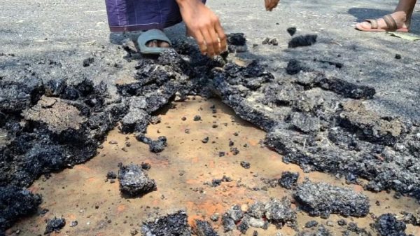 সোহেল খান দূর্জয়- নেত্রকোনা : নেত্রকোনার দুর্গাপুর উপজেলার সদর ইউনিয়নের চারিয়া থেকে মাকড়াইল বাজার পর্যন্ত সড়কটিতে পিচ ঢালাই হয়েছে মাত্র সপ্তাহ খানেক আগে। এরই মধ্যে হাতের টানেই উঠে যাচ্ছে সড়কের