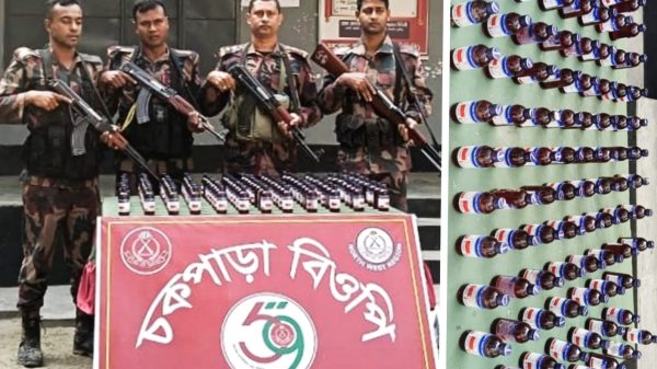 মাহিদুল ইসলাম ফরহাদ চাঁপাইনবাবগঞ্জ জেলা প্রতিনিধি চাঁপাইনবাবগঞ্জ মহানন্দা ব্যাটালিয়নের গোপন সূত্রে ভিত্তিতে অভিযান চালিয়ে চাঁপাইনবাবগঞ্জ জেলার শিবগঞ্জ উপজেলার সীমান্ত হতে ফেন্সিডিল এর বিকল্প হিসেবে ব্যবহৃত আবারো ৯৪ বোতল নেশাজাতীয় চকো