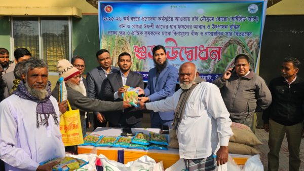 এম. এস. আই শরীফ, ভোলাহাট (চাঁপাইনবাবগঞ্জ) প্রতিনিধিঃ চাঁপাইনবাবগঞ্জের ভোলাহাটে উপজেলার প্রান্তিকচাষীদের মাঝে ২০২৫-২০২৬ অর্থবছরে কৃষি প্রণোদনা হিসেবে ধানবীজ ও রাসায়নিক সার বিতরণের শুভ উদ্বোধন (১০ ডিসেম্বর ২০২৫) বুধবার সকাল ১০টায়