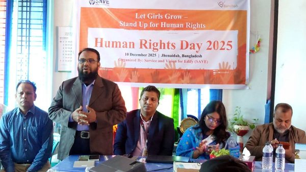 মোঃ রবিউল ইসলাম, স্টাফ রিপোর্টার ঝিনাইদহঃ “মেয়েদের বড় হতে দিন, মানবাধিকারের পক্ষে দাঁড়ান” এই স্লোগানকে প্রতিপাদ্য করে ঝিনাইদহে মানবাধিকার দিবস পালিত হয়েছে। জেলার বেসরকারি সংস্থা সারভিস এন্ড ভিশন ফর এডিফাই
